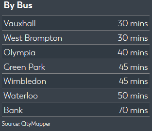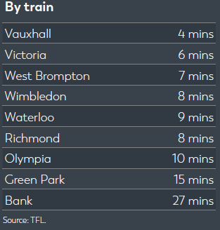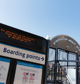 The MBNA Thames Clippers River Boat pontoon at Plantation Wharf offers 18 services a day between Putney and Blackfriars.