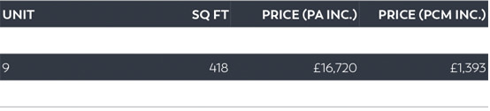 Rent is charged at £40 per sq ft inclusive of service charge, but exclusive of VAT and business rates.